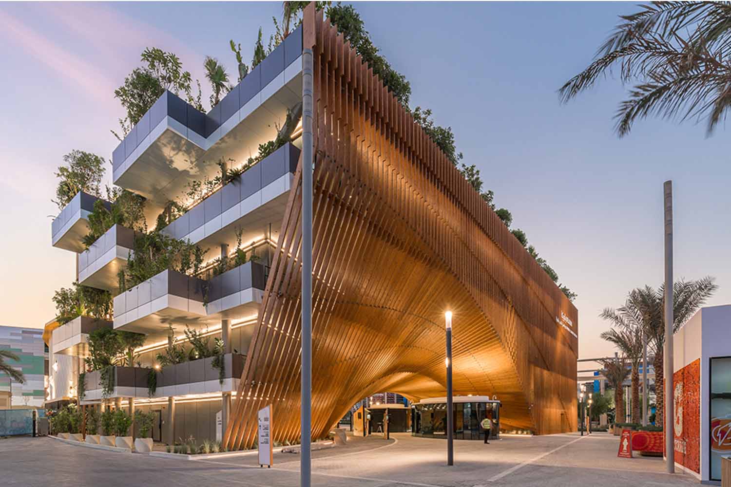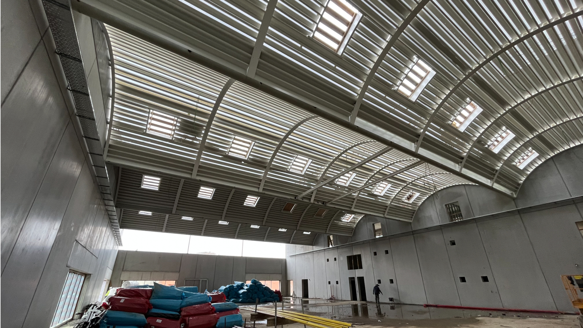 Een bioklimatisch glasdak opgebouwd uit boogspanten