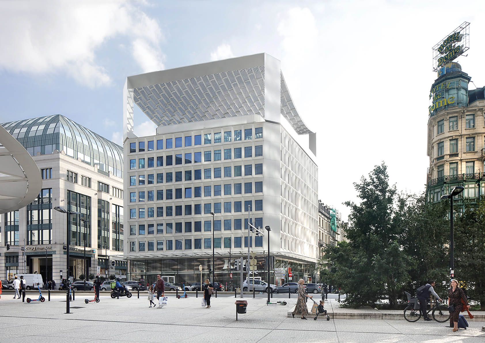 L’auvent Bota Solar génère de l’énergie solaire et filtre les rayons du soleil. On a pu le voir récemment perché au sommet d’un immeuble de bureaux rénové des années 1970, au cœur de Bruxelles.