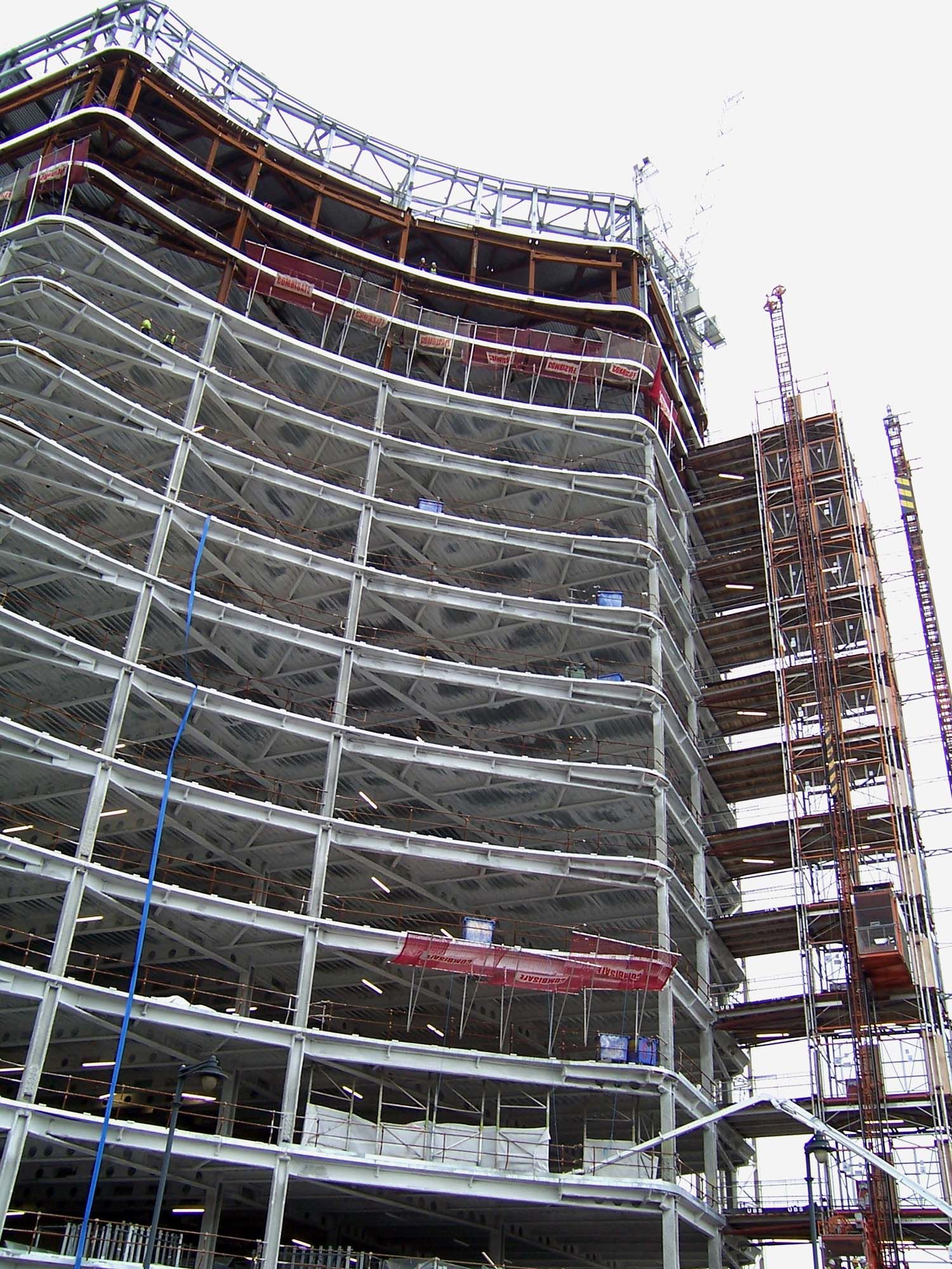 Grâce à cette construction de poteaux et de poutres horizontales munies de steeldeck, l’ensemble de la structure est plus léger et les fondations sont moins sollicitées, et donc moins chères. Autre avantage, une importante diminution du temps de construction. Comme la structure en acier peut être préassemblée en atelier, le chantier ne doit pas disposer d’un grand espace de stockage, un avantage dans une grande ville comme Londres.