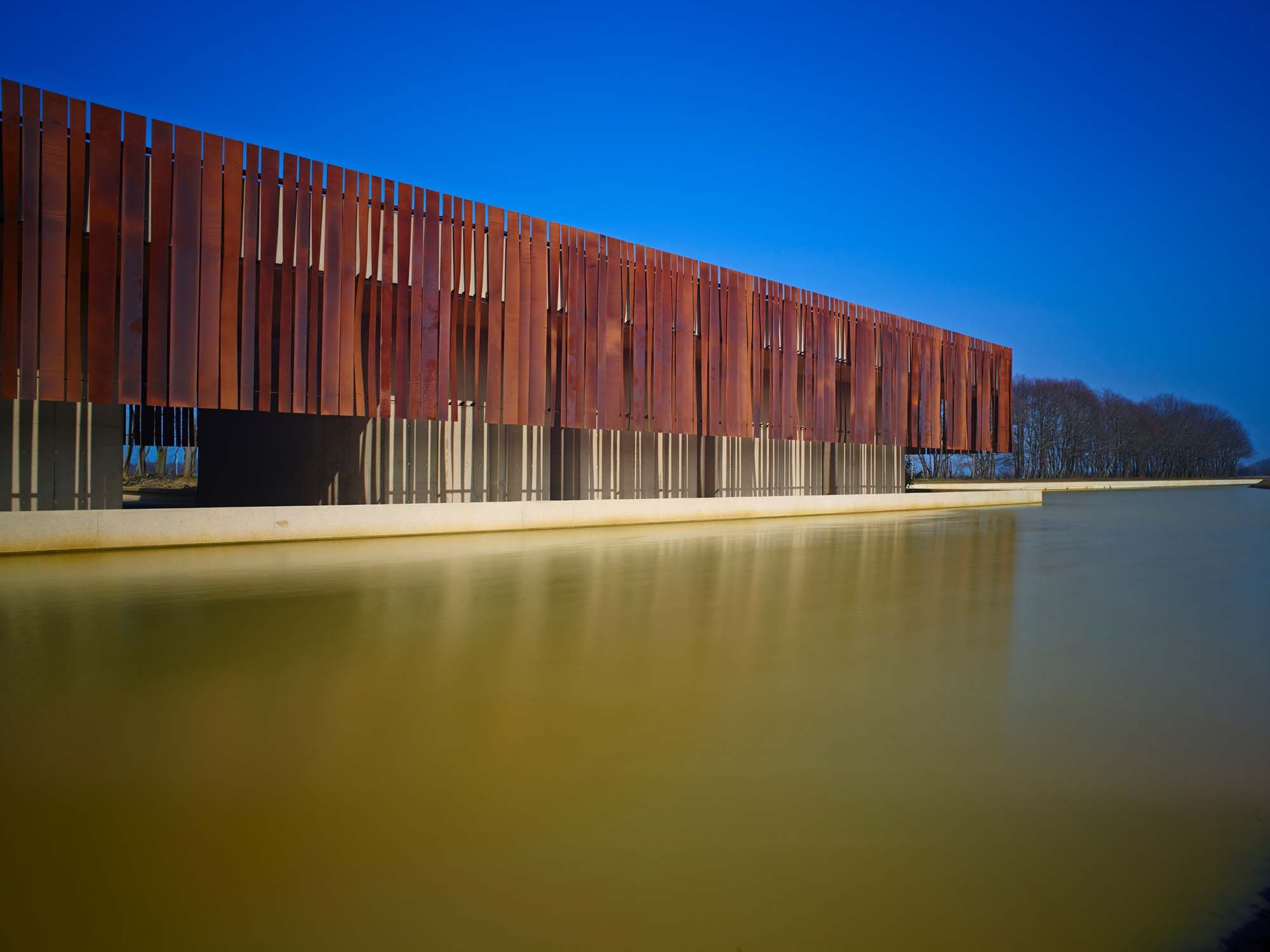 Les architectes voulaient créer une architecture apparentée à un reliquaire; un bâtiment conçu comme un sarcophage. L’objectif était de donner à l’ensemble un caractère sacré sans évoquer une religion spécifique. La lumière, l’ambiance et l’eau joue un rôle important. Le bâtiment est très fermé et émane par la lumière indirecte une ambiance intime.