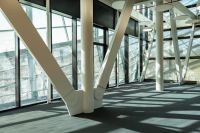 Imposante vliegtuigloods met golvende dakstructuur