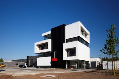 Tekst: <p>De nieuwe hoofdzetel van Optitherm in Vilvoorde doet denken aan een reusachtig, massief trapezium. Het gebouw bestaat uit vijf bouwlagen en biedt bevat 2900 m² bedrijfsruimte. Hoewel de kern van het complex ter wille van de stabiliteit uit beton bestaat, is staal het dominante materiaal. De draagstructuur van het gebouw bevat in totaal immers 184 ton staal. De ongewone vorm van het gebouw en de speciale inrichting (het dakterras bevat immers een ingebouwd zwembad), maakten het gebruik van een snel en flexibel te monteren staalconstructie noodzakelijk. </p>