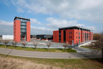 Tekst: <p>Op een druk kruispunt aan de rand van Brugge, aan de Katarinapoort, werd een nieuw kantoorgebouw gerealiseerd op een verkrotte, moeilijk te ontsluiten site. De bouw verliep samen met de reorganisatie van de site in een gefaseerd plan. <br>