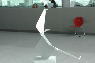 Tekst: <p>Cette sculpture a été offerte par Lloyd DOS SANTOS DIAS à l’aéroport de Bierset. Sculpteur liégeois, il crée de magnifiques réalisations en acier qui trouvent leur place dans des parcs d’exposition ou dans des musées, notamment au MAMAC à Liège. Pilote de planeurs, Lloyd DOS SANTOS DIAS est passionné d’aviation. TAKE OFF, mi-avion, mi-oiseau, est un hommage aux aviateurs et aux créateurs d’avions, qui ont pu trouver chez les oiseaux toute l’inspiration pour réaliser le plus vieux désir de l’homme… voler… La sculpture est entièrement en Acier S235jr, d’une épaisseur de 5 mm. L’œuvre est entièrement soudée à l’électrode enrobée de 2.5 de diamètre. Certaines parties sont découpés au laser, comme les ailes, et la face avant avec le lettrage Take Off. Peinture époxy blanc de finition.</p>