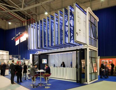 Tekst: <p>ODS en Jansen kwamen op de Gevel 2012 voor de dag met een nieuw beursstandconcept. Om hun stalen raam-, deur- en gevelsystemen te presenteren, lieten ze SCULP(IT) ARCHITECTEN een flexibele stalen stand ontwerpen die op diverse manieren kan worden opgesteld. Hij bestaat uit twee op elkaar gestapelde modules (6 meter lang, 2,4 meter diep, 2,8 meter hoog) die stevig aan elkaar verankerd zijn met ‘twist locks’ en opgebouwd zijn uit warm gewalste kokers (S 275 120 x 120 x 8 mm). De bovenste module bevat dertien railsystemen, waarin de raamprofielen van Jansen bevestigd worden. Een RGB-ledverlichting zorgt hier voor een fijn visueel effect. De onderste module herbergt onder andere een onthaalzone. In vergelijking met andere, klassieke standen kan deze nieuwe stand op zeer korte tijd worden opgebouwd en wordt er bij opbouw en afbraak slechts een minimum aan afval geproduceerd. Hij kan ook eenvoudig per vrachtwagen vervoerd worden.</p>