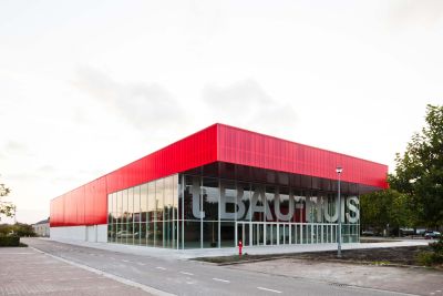 Tekst: <p>Langs de spoorwegberm in Sint-Niklaas vormden B-architecten en studiebureau Mouton een bestaande loods om tot een multifunctionele beurs- en evenementenhal. Behalve de grote centrale foyer en de grote evenementenzaal, die ingericht werden in de voormalige industriële hal, is er ook een nieuwe, akoestische zaal. Deze staat door zijn specifieke vorm en speelse configuratie van draagbalken in contrast met de bestaande zaal. De foyer is een open, glazen doos onder een lichte stalen vakwerkconstructie. De vakwerken bestaan uit zes slanke kruisvormige kolommen, die samen achttien meter overspannen. Vanaf de kolommen maken ze nog een uitkraging van negen meter, die fungeert als luifel boven de inkomzone. Ook het dak is opgebouwd uit staal, meer bepaald uit twee reeksen gelaste vakwerken die elkaar kruisen, wat het meteen ook een in het oog springend structureel element maakt. </p>