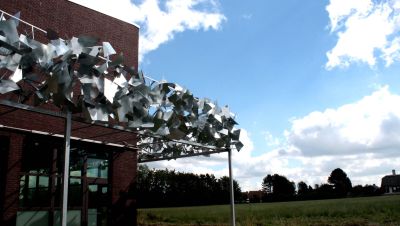 Tekst: <p>Voor dit kunstproject besloot het OCMW van Zedelgem het aangename aan het nuttige te koppelen: de kunstige constructie die voor de gevel van het OCMW geplaatst werd, doet ook dienst als gedeeltelijke zonwering. <br>