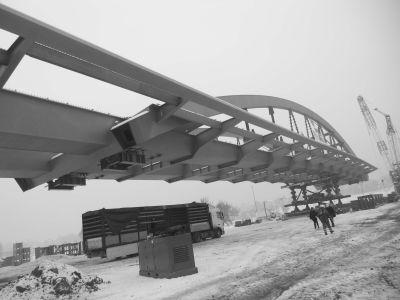 Omdat de Elbe een breed overstromingsgebied heeft, werd de brug opgebouwd uit een linker en rechter voorlandbrug die door V-steunen wordt ondersteund, en een boogbrug met een overspanning van 148 meter.<br>