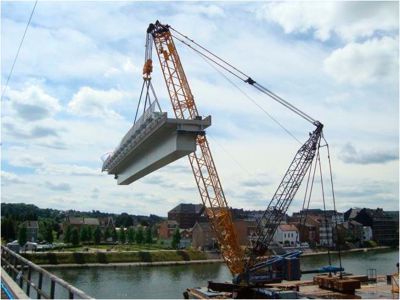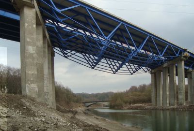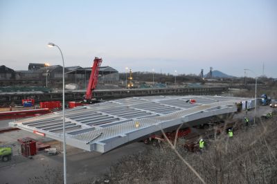 Tekst: <p>Le viaduc de Landelies est un viaduc autoroutier de 375 m de long situé sur le R3 (ring de Charleroi) sur la commune de Montignies-le-Tilleul. En 2011 s'est terminé le chantier de remplacement des trois travées situées au-dessus de la Sambre. Ces travées étaient en béton précontraint et ont été remplacées par trois travées mixtes. Les piles ont été conservées. La travée centrale est constituée de neuf poutres treillis et d’une dalle de béton. L’originalité de ce projet d’ouvrage d’art réside dans la beauté architecturale de la structure acier, notamment les poutres treillis, bien visibles au-dessus de la Sambre. La collaboration des poutres avec la dalle est assurée via les goujons connecteurs. Les poutres ont été mises en place à partir d’une barge se trouvant dans la Sambre. Les trois travées ont une longueur totale de 137 m, dont 68,60 m pour la travée centrale. </p>