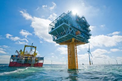 Tekst: <p>De Belwind offshore windfarm bevindt zich op de Bligh zandbank in de Noordzee, op 45 km van Oostende. Met zijn 55 windmolens is dit het grootste offshore windmolenpark van België. Dankzij een maximumcapaciteit van 165 MW kan het 175.000 gezinnen van groene energie voorzien. De functie van het Offshore Transformer Station bestaat in de koppeling van alle 33 KV-kabels komende van de windmolens, aan de exportkabel 155 KV naar land. Hier vindt de omzetting en optimalisatie plaats van de stroom en spanning. Het onbemand station is ‘remote controlled’, meet 30 m bij 22 m en is 26 m hoog. Het totaal gewicht bedraagt 1150 ton, inclusief 540 ton staal.<br>