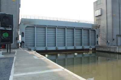 Tekst: <p>Door schade aan de staalconstructie van de bestaande zinkdeur van het sluizencomplex in Zemst werd besloten deze volledig te vervangen. De zinkdeur overspant een breedte van 26,8 m, heeft een hoogte van 9,5 m en weegt 125 ton.</p>