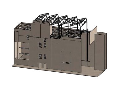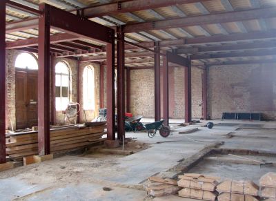 Daar het gebouw ook een kunstenaarsatelier zou herbergen, werden binnenin open ruimten gewenst. Om deze nieuwe invulling mogelijk te maken zonder het bestaande omhulsel aan te tasten en zonder hierbij de bestaande funderingen te overbelasten, werd geopteerd voor een staalconstructie. Ook voor de vloeren werd omwille van de lichtheid en de duidelijke link naar het industriële verleden gebruik gemaakt van staalplaatbetonvloeren. Deze vloeren werden bovendien ook meewerkend uitgevoerd met de onderliggende hoofddragers, om zo minimale profielsecties en een optimaal materiaalgebruik te verwezenlijken.