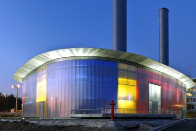 • Tekst: <p>Deze warmtekrachtcentrale levert warmte en koude aan de luchthaven van Luxemburg en aan verschillende kantoorgebouwen. Het technische en industriële gebouw heeft een compact, organisch ontwerp.<br> De gevels van vierkamerpolycarbonaat zorgen voor homogeniteit en transparantie, terwijl de stalen daklijst als een vleugel boven het gebouw uitsteekt. Deze daklijst van 2 m breed benadrukt de organische vorm van het gebouw op een geraffineerde en slanke wijze. De dragende structuur is van staal, bekleed met thermogelakte panelen.</p>