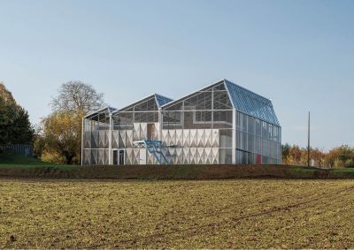 Tekst: <p>Paddenbroek in Gooik onderging de voorbije jaren een ware metamorfose. De hoeve werd ontmanteld en eroverheen kwam een volume van staal en glas. Onopvallend is Paddenbroek geenszins. In het golvende Pajottenland zijn landschap, natuur, erfgoed en cultuur door de eeuwen heen nauw met elkaar verweven geraakt. Dat fragiel evenwicht bewaren en versterken was één van de grote uitdagingen van het plattelandscentrum Paddenbroek.</p> <p>De serre die gebouwd werd rond een stalen skelet – goed voor 23 ton - heeft een afdalend sheddak dat de ideale lichtinval uit het noorden toelaat. Binnen de onverwarmde serre heerst bijgevolg een tussenklimaat. De bezoekers zijn er beschut tegen regen en wind en kunnen toch genieten van het schitterend uitzicht op de omgeving. </p>