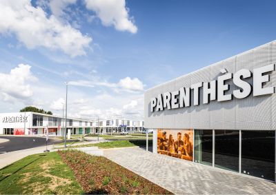 Tekst: <p>Een originele en ambitieuze architectuur ontwerpen voor een retailproject en tegelijk een aangename omgeving creëren voor de gebruikers: dat was het doel stelden voor het Parenthèse-complex in Gosselies. Het winkelcentrum springt uit de band dankzij zijn riant beglaasde, witte stalen schil en opvallende ruimtelijke compositie (twee gebouwen tegenover elkaar). Het 10.000 m2 grote complex ontleent zijn naam aan de symmetrische kromming van de gebouwen, die doet denken aan de alom bekende leestekens (haakjes).</p> <p>De gebouwschil, zowel om esthetische als functionele redenen, uit stalen sandwichpanelen, aan de voorgevels bekleed met witte strekmetaalpanelen en afgewisseld met beglazing.</p> <p>De voornaamste technische uitdaging schuilde echter in het ontwerp en de installatie van de zadeldakranden en de luifel, die in alle opzichten identiek zijn (dikte, kromming) en een doorlopend geheel vormen. </p>