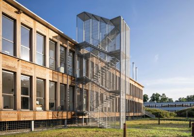 Tekst: <p>Om haar diensten op één site te centraliseren, liet de provincie Namen een nieuwe hoofdzetel optrekken in hout en staal. Het rechthoekige houten gebouw is op palen in gegalvaniseerd staal geplaatst. Er is ook staal gebruikt voor een aantal elementen die aan het gebouw verankerd zijn, met name de brede buitengang in traanplaten en de beglaasde luifel die de volledige voorgevel bestrijkt. De buitenlift en -passerelle bestaan uit gelaste modules in gewalste profielen (L, T en HEA) en zijn thermisch verzinkt. De traptoren die de externe noodtrap omhult, is bekleed met panelen in geperforeerd Magnelis®-plaatstaal, wat bijdraagt tot de uitgesproken transparantie van deze structuur.</p>