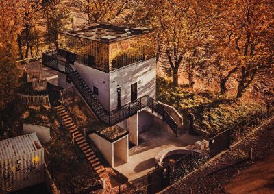 Tekst: <p>De bouwheer wilde een bescheiden oude watertoren omtoveren tot een bijzondere vakantiewoning. Het oorspronkelijke betonnen gebouw werd uitgebreid en uitgerust met een nieuwe verdieping. De gevels van die nieuwe verdieping zijn afgewerkt met een indrukwekkende ‘spiegelbekleding’, die de buitenomgeving reflecteert. De gevelbekleding bestaat uit op maat gemaakte cassettes van supergepolijste 304-inoxplaten, een keuze die zowel duurzaam als esthetisch verantwoord is. In het oorspronkelijke gebouw waren de ruimtes alleen verbonden door binnenladders en -luiken. De renovatie omvatte bijgevolg ook de installatie van een buitentrap om de circulatie te vergemakkelijken. De borstwering, die vervaardigd is uit S235-staal, werd op maat ontworpen met een pixelvormig design dat de interactie met de omringende natuur extra versterkt.</p>