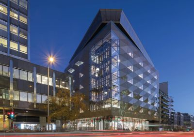 Tekst: Royal-Hamilius is een gemengd project met woningen, kantoorruimtes en winkels dat uit vijf gebouwen bestaat, waarvan het emblematische B1 de Galeries Lafayette huisvest. Het gebouw wordt gekenmerkt door een niet-structurele stalen gevel met de vorm en de uitstraling van een diamant. De hoofdgevel is bevestigd aan de gewapende betonnen draagstructuur van het gebouw. Er is 97 ton S355JR-staal gebruikt voor de gevel en 22 ton voor het glazen dak boven het centrale atrium – hoofdzakelijk buisprofielen met standaardafmetingen. De keuze voor staal is vooral ingegeven door de zeer grote afstand tussen de verticale profielen van de vliesgevelconstructie – een horizontale overspanning van 9,09 meter – waardoor het gebruik van aluminium onmogelijk was. Het restaurant op het dak bestrijkt de twee bovenste verdiepingen. De staalconstructie (54 ton S355JR-staal) is een kunstwerk op zich, want geen enkel element is verticaal – zelfs de kolommen niet.