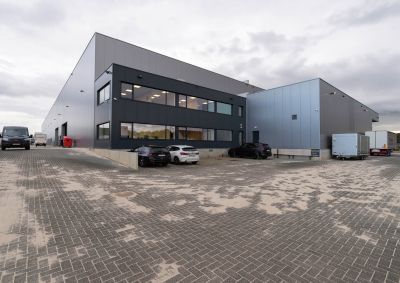 Tekst: <p>Vastgoedmakelaar Aron Investments uit Tilburg (NL) startte begin 2021 met de eerste fase van de 5.000 m2 logistieke hal in Berkel (NL). Eind 2021 werd ook de tweede fase, een gelijkvloerse kantooromgeving met bovenliggende appartementswoningen in uitvoering gebracht. Door de ligging werd het esthetische aspect van het gebouw een belangrijke factor in het ontwerpproces.</p> <p> Op de site was voorheen een ander bedrijf gehuisvest dat volledig was uitgebrand. Enkel de beschadigde vloerplaat, kruipkelder en fundering waren overgebleven. Het studiebureau had een lichte staalstructuur ontworpen om bovenop de bestaande funderingen te plaatsen. De zwaarste beschadigde vloerplaten en funderingsbalken werden hersteld.</p> <p>Staaltoepassingen binnen het project zijn de volledige draagstructuren van het gebouw, waaronder de kolommen, dakliggers, kantelnokken ter hoogte van de brandwanden, de gevelbekledingen uit geïsoleerde sandwichpanelen en de geprofileerde dakplaten. </p>