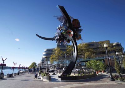 Tekst: Het nieuwe kunstwerk van Arne Quinze luistert naar de naam ‘Whispers’ (gefluister). Het bestaat uit een reeks van 20 sculpturen van staal S355. ‘Whispers’ maakt deel uit van de renovatie van het verkeersvrije Koningsplein in Enschede. Het is bedoeld als symbool voor de strijd om meer natuur binnen onze steden en belichaamt als het ware de eerste loten van deze overwinning.