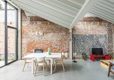 Tekst: <p>Un entrepôt de 245m² utilisé par une entreprise de restauration en périphérie de l’ancien centre de Bruges, était au fil des ans encerclé par des immeubles résidentiels.</p><p>L’architecte a opté pour une nouvelle construction de remplacement (atelier avec habitation) ressemblant beaucoup au bâtiment d’origine. Le volume parallélépipédique de 33 x 5 m est logé entre des murs mitoyens, avec un espace restant utilisé comme un jardin. Douze portiques identiques présentant un entre-axe de 3 m apportent un certain rythme aux onze travées dans la distribution de l’espace. Le projet a été réalisé en deux phases, les portiques de la partie habitation sont laqués en noir, tandis que ceux de la partie professionnelle ont été métallisé en noir. Comme seuls les portiques font office d’éléments porteurs, l’architecte dispose d’une totale souplesse fonctionnelle.</p><p>Le but n’est pas de se positionner comme un monument, mais bien de témoigner du passé de manière subtile.</p>