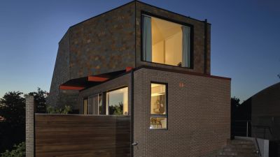 Tekst: Cette habitation se démarque des autres maisons d’ouvrier classiques par son apparence épurée en acier. Et pourtant, l’objectif n’est pas de jouer au dur. Il s’agit plutôt de l’expression d’un concept à la fois réfléchi et original où optimisation des espaces et écologie jouent un rôle central.