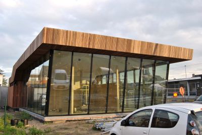 • Tekst: <p>À l’ombre de la gare de Buggenhout, ces bureaux audacieux abritent une permanence de mutalité. Le choix s’est porté sur une sorte de pavillon particulièrement accessible puisque tous les espaces sont situés au rez-de-chaussée. L’utilisation de grandes verrières renforce cette impression d’accessibilité et intensifie le sentiment de se maintenir à ras de terre. Le prolongement du toit par un auvent, visuellement accrocheur, protège des surchauffes estivales. Le bâtiment se caractérise par l’absence totale de fonction porteuse dans son espace intérieur : la menuiserie extérieure en acier a été calculée de manière à ce que l’ensemble du toit soit porté par ses profilés creux en acier. La menuiserie se voit ainsi à affecter la fonction de structure porteuse. Le mur pignon incliné constituait à cet égard un défi supplémentaire, notamment parce que tous les châssis sont en triple vitrage. </p>