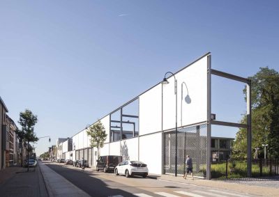 Tekst: <p>L'Atelier PPW a été conçu comme un bâtiment transparent et flexible, comme une vitrine pour une école technique à Ostende. La dématérialisation du bâtiment met l'accent sur les activités à l'intérieur. La structure principale consiste en une boîte de verre avec des colonnes et des planchers en béton, tandis que des escaliers et des passerelles en éléments d'acier favorisent la circulation à l'air libre et les techniques. L'acier a été choisi pour sa flexibilité, sa durabilité et sa légèreté, ce qui permet de le modifier ou de l'agrandir facilement par la suite. Par exemple, les cages d'escalier sont déjà conçues pour accueillir un étage supplémentaire sur le toit à l'avenir. </p>