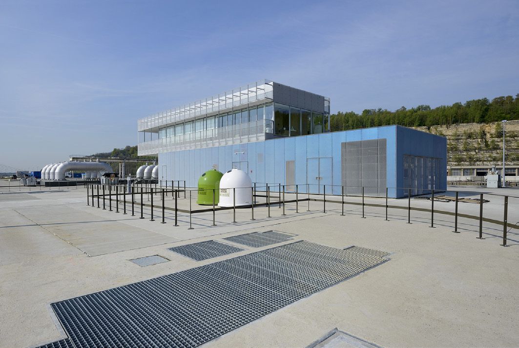 Le nouveau poste de commande est implanté en bordure de l’écluse principale et regroupe les commandes des 4 écluses du site de Lanaye. Le bâtiment se compose de deux volumes parallélépipédiques, superposés et décalés. Le volume supérieur est complètement vitré. Grâce à sa structure métallique particulièrement minimaliste, composée de 4 tubes 150/150/5 mm supportant la toiture. Les façades et les faux-plafonds sont enveloppés de feuilles en métal déployé.